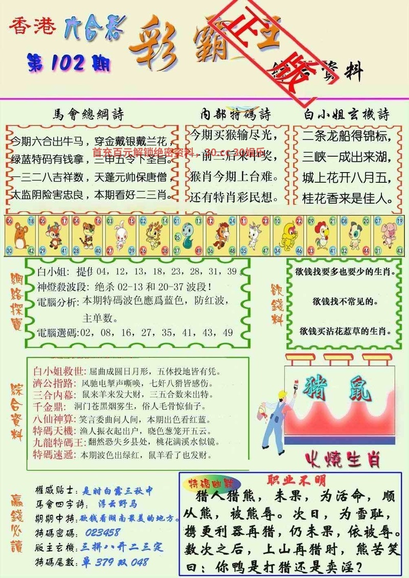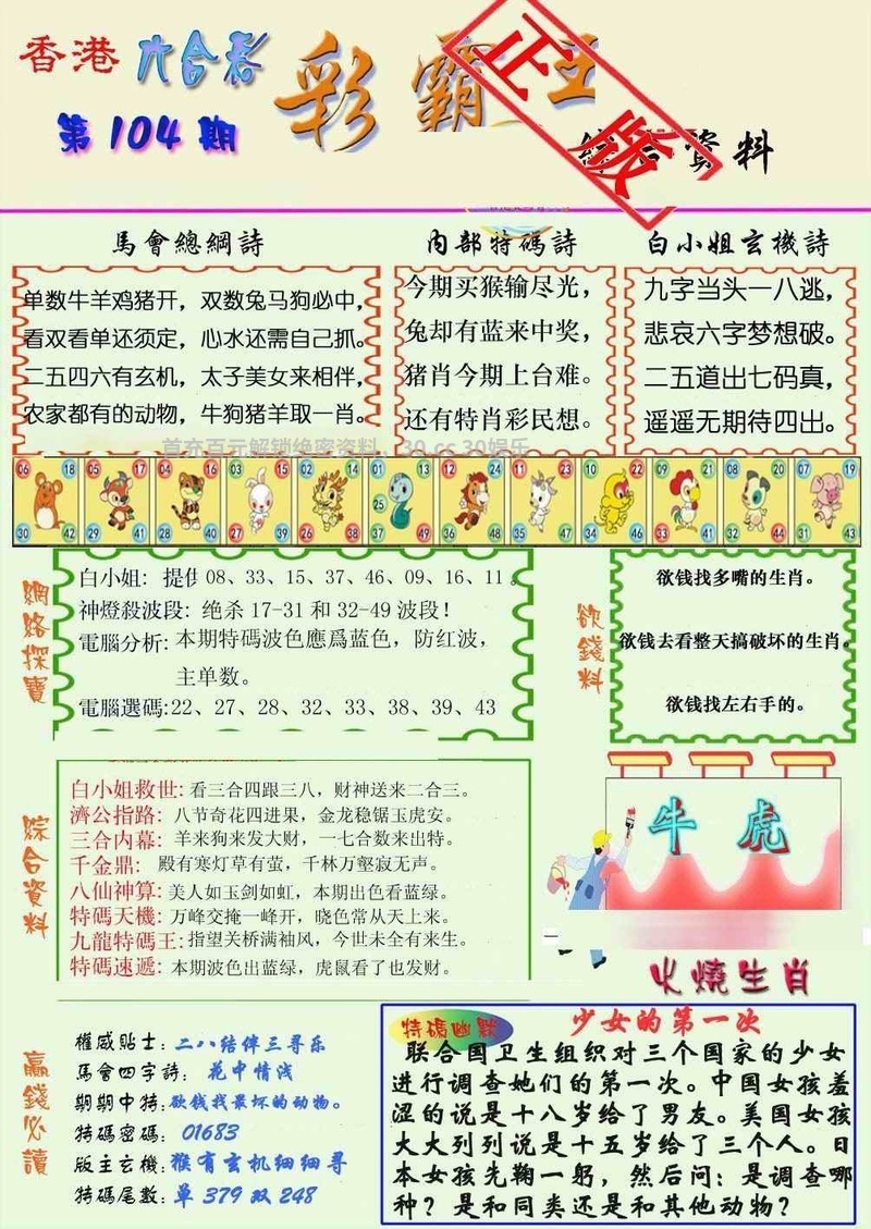 104期:单【猪兔鸡牛】双【虎龙鼠】开:狗32准