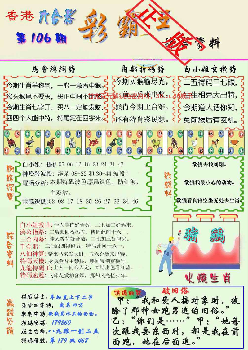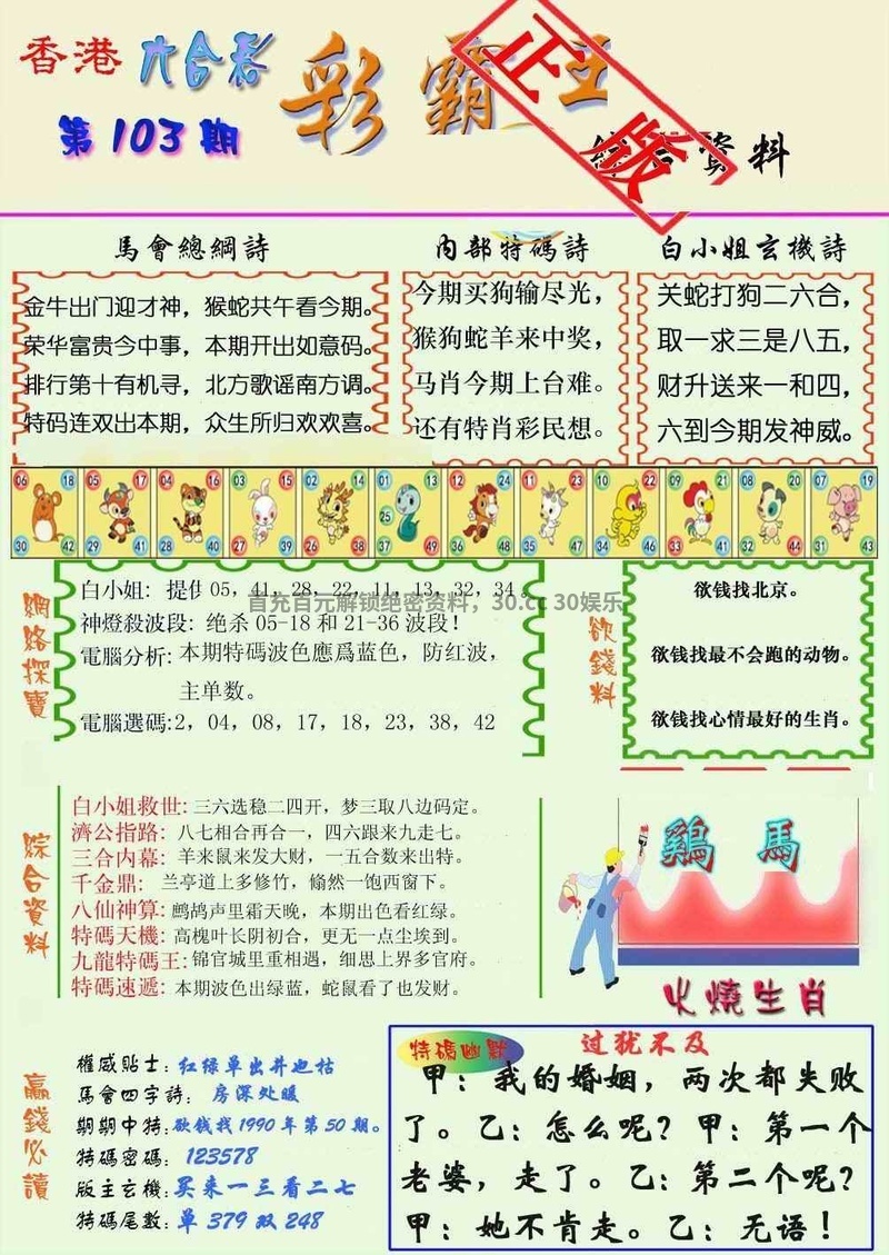 106期:单【牛兔羊】双【马猴狗龙】开:猪43准